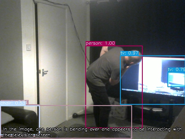 In the image, one person is bending over and appears to be interacting with the television screen.