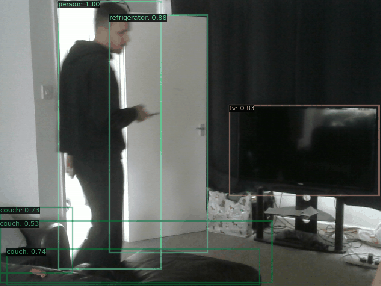 AI Commentary: In the animation, a person is seen standing near a door. They appear to be holding their phone in one hand while looking down at it. The setting includes a couch and a television, indicating a living room environment. The individual seems to be in motion, possibly walking towards or away from the door. The overall scene suggests a casual, everyday activity, likely involving checking or using their phone while in the living space.
