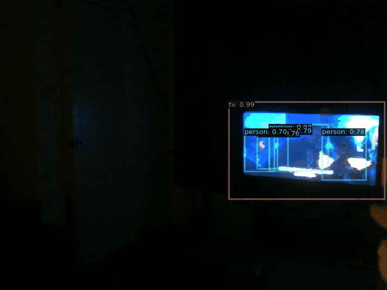 AI Commentary: In the animation, there are two people visible on the screen, likely engaged in an activity. One appears to be interacting with the television, possibly watching a show or playing a video game. The other person seems to be either sitting or standing close by, possibly observing or participating in the same activity. The environment is dimly lit, suggesting a cozy or relaxed atmosphere.