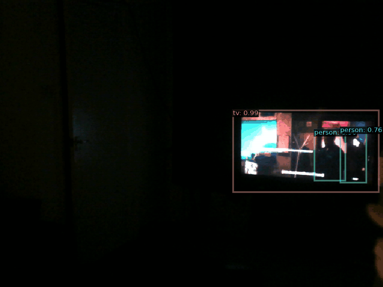 AI Commentary: In the animation, it appears that there are two people present in a room. They seem to be engaged in some form of interaction, likely talking or observing something on the television screen, which is brightly lit. The setting is dimly lit overall, with the TV providing most of the illumination. The individuals are facing the TV, suggesting their focus is on the content being displayed. There is also a door visible in the background, which could indicate an entry or exit point in the space.